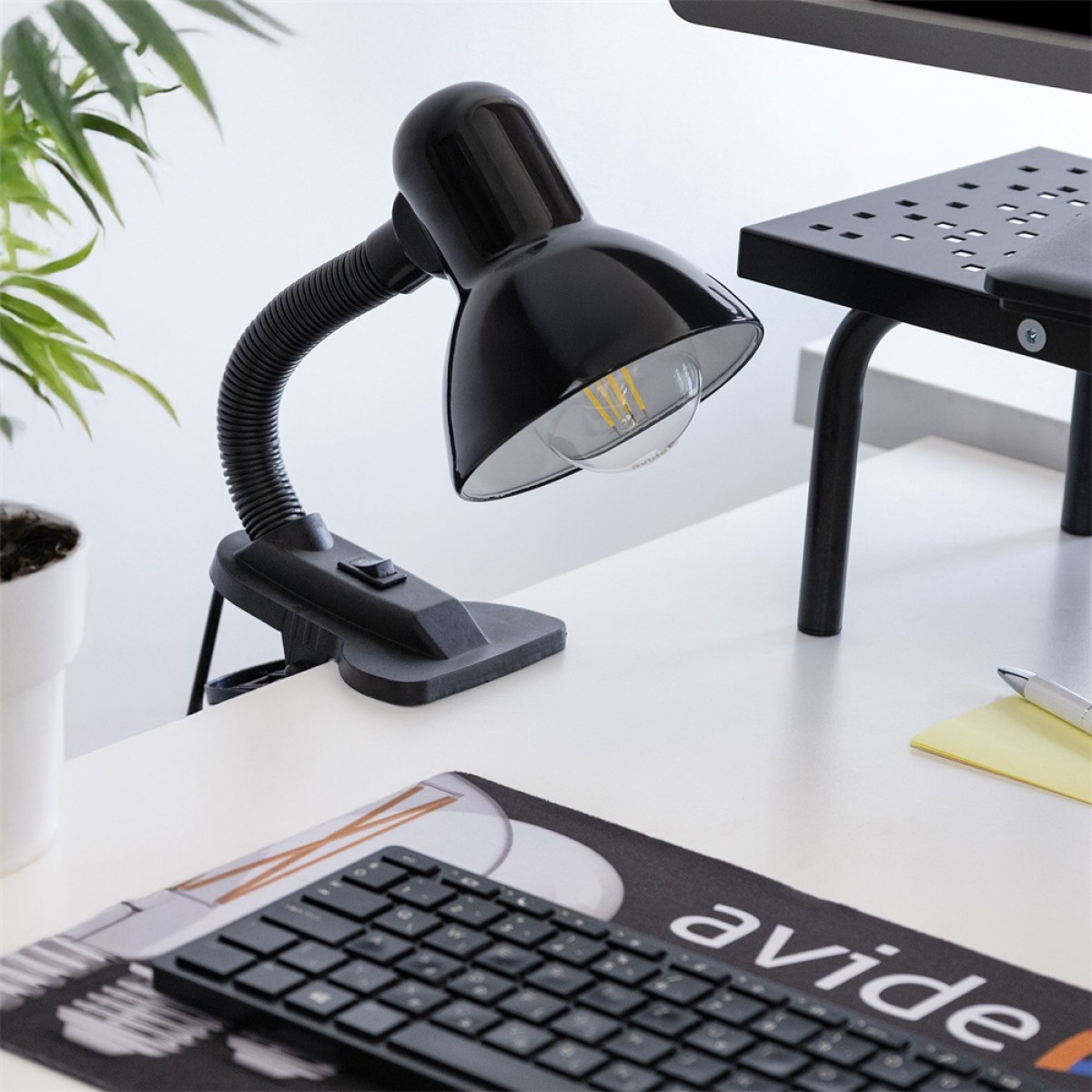 Asztali lámpa, Basic csiptethető, max. 60W, AVIDE, fekete bemutatása