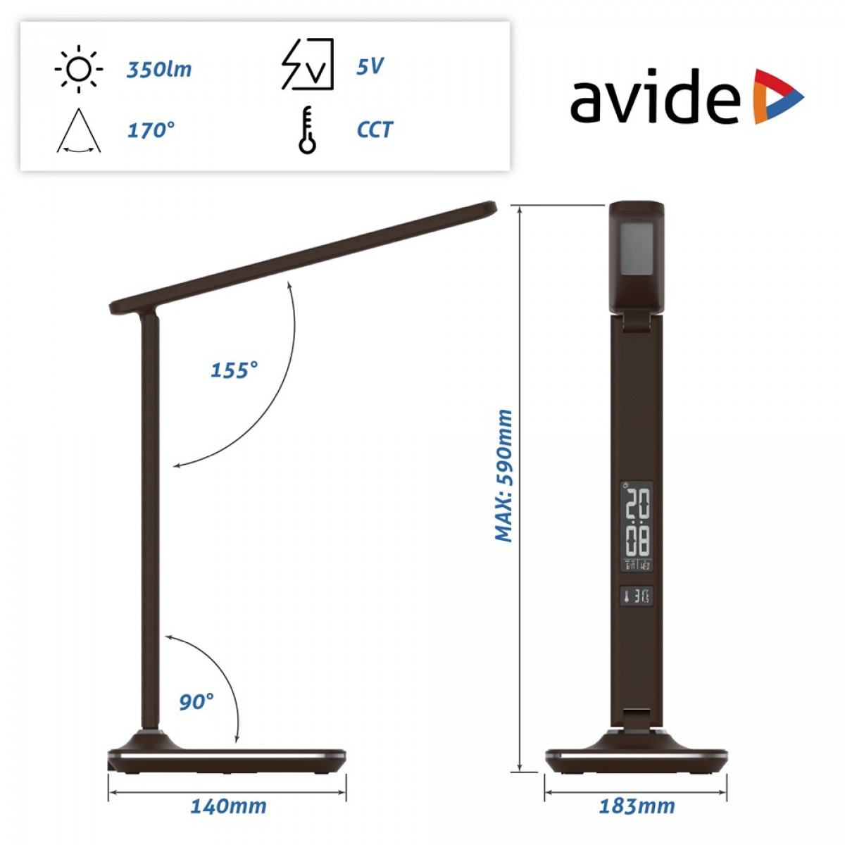 Asztali LED lámpa, Nathan, kijelzős, 6W, 5000K, AVIDE, barna