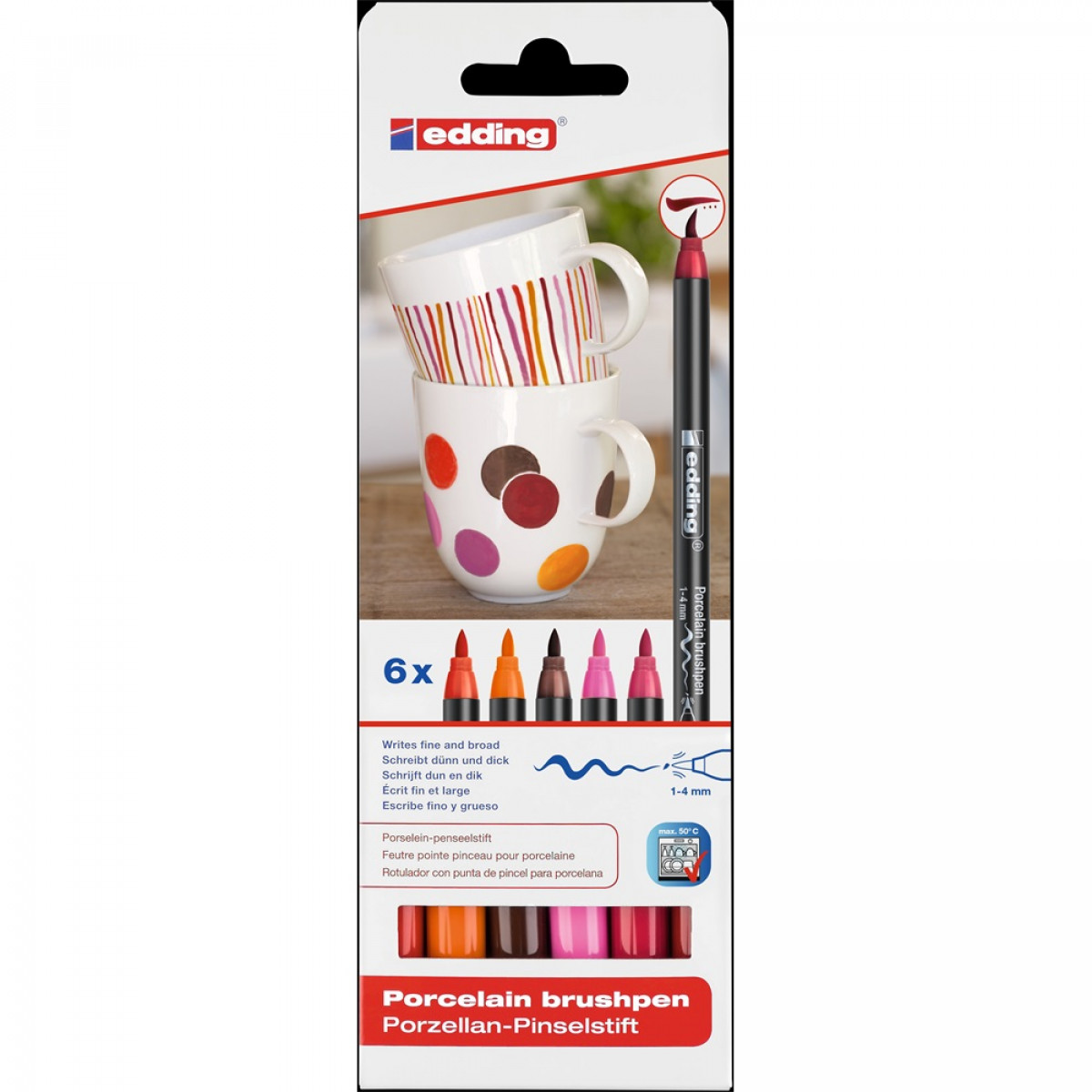 Ecsetirón porcelán marker 1-4mm, kerek Edding 4600/6, 6 warm klf.szín bemutatása