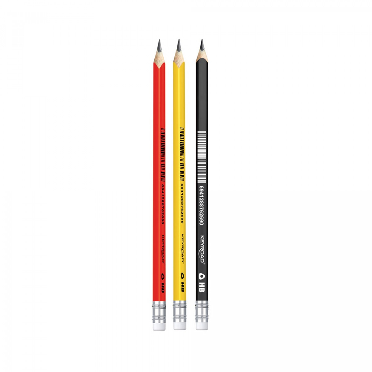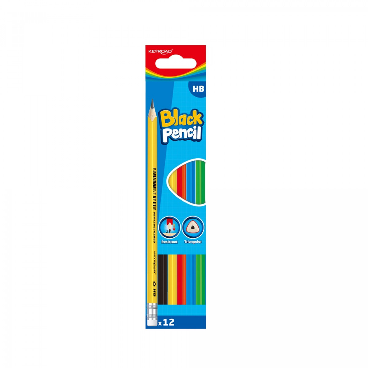 Grafitceruza, HB, radíros, háromszögletű, 12 db/bliszter, Keyroad, vegyes színek