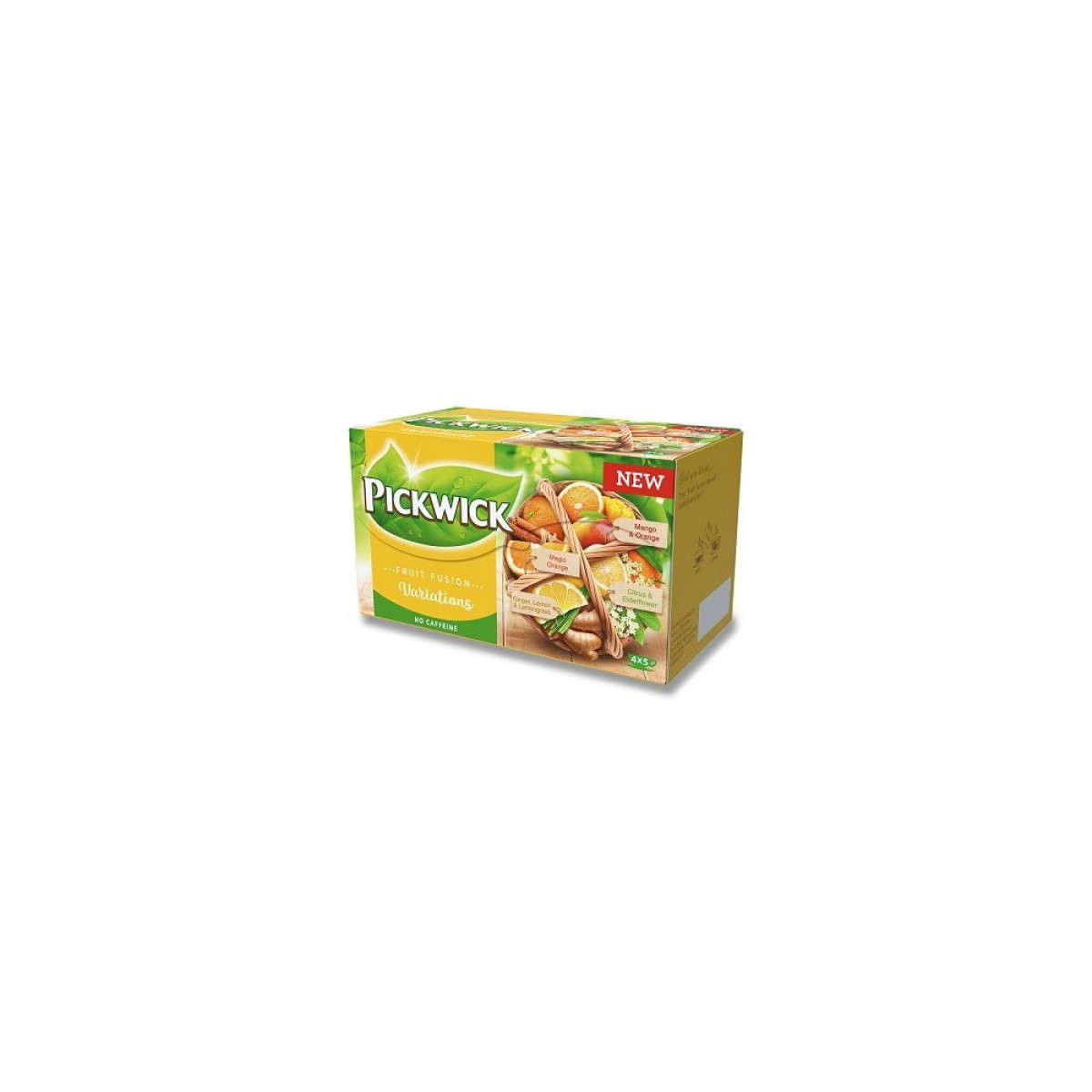A Pickwick Fruit Variations gyümölcstea válogatás (Sárga) frissítő és üdítő ízélményt nyújt, citrusos és gyümölcsös jegyekkel. Egy doboz 5 különböző ízesítésű koffeinmentes gyümölcsteát tartalmaz, összesen 20 filter formájában. Kiváló választás nap bármely szakában.