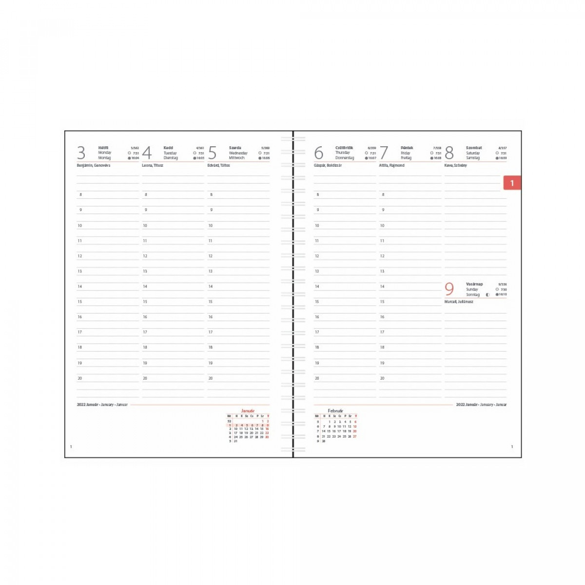 - Naptár beosztás: Heti (1 hét 2 oldalon)