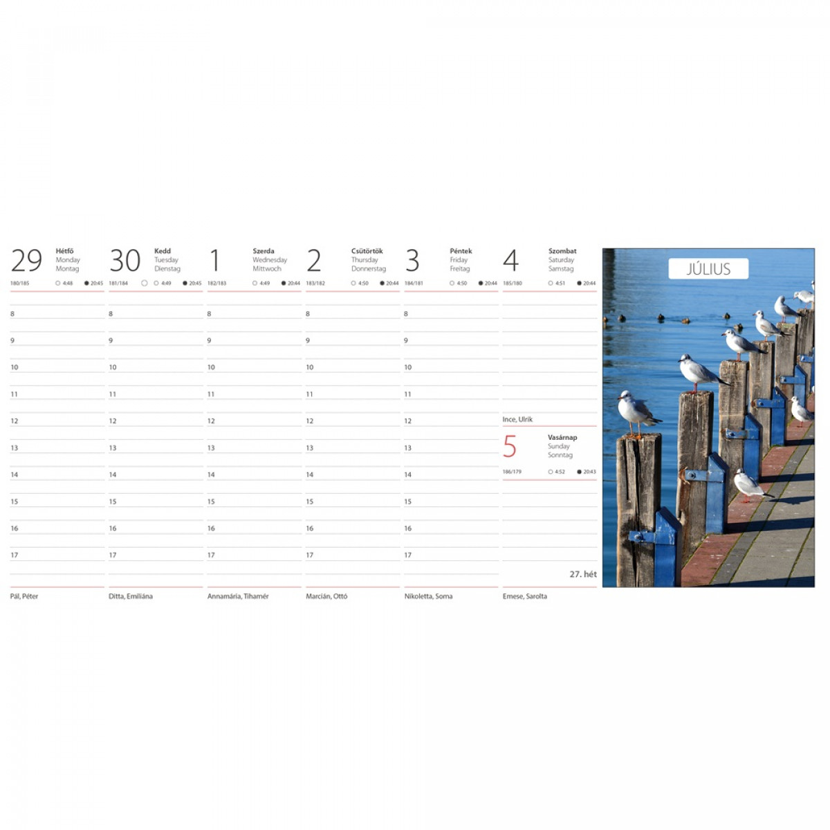A Képes asztali naptár Magyarország 320 x 150 mm-es méretben, fehér lapokkal és Dayliner kivitelben, a következő jellemzőkkel rendelkezik:
