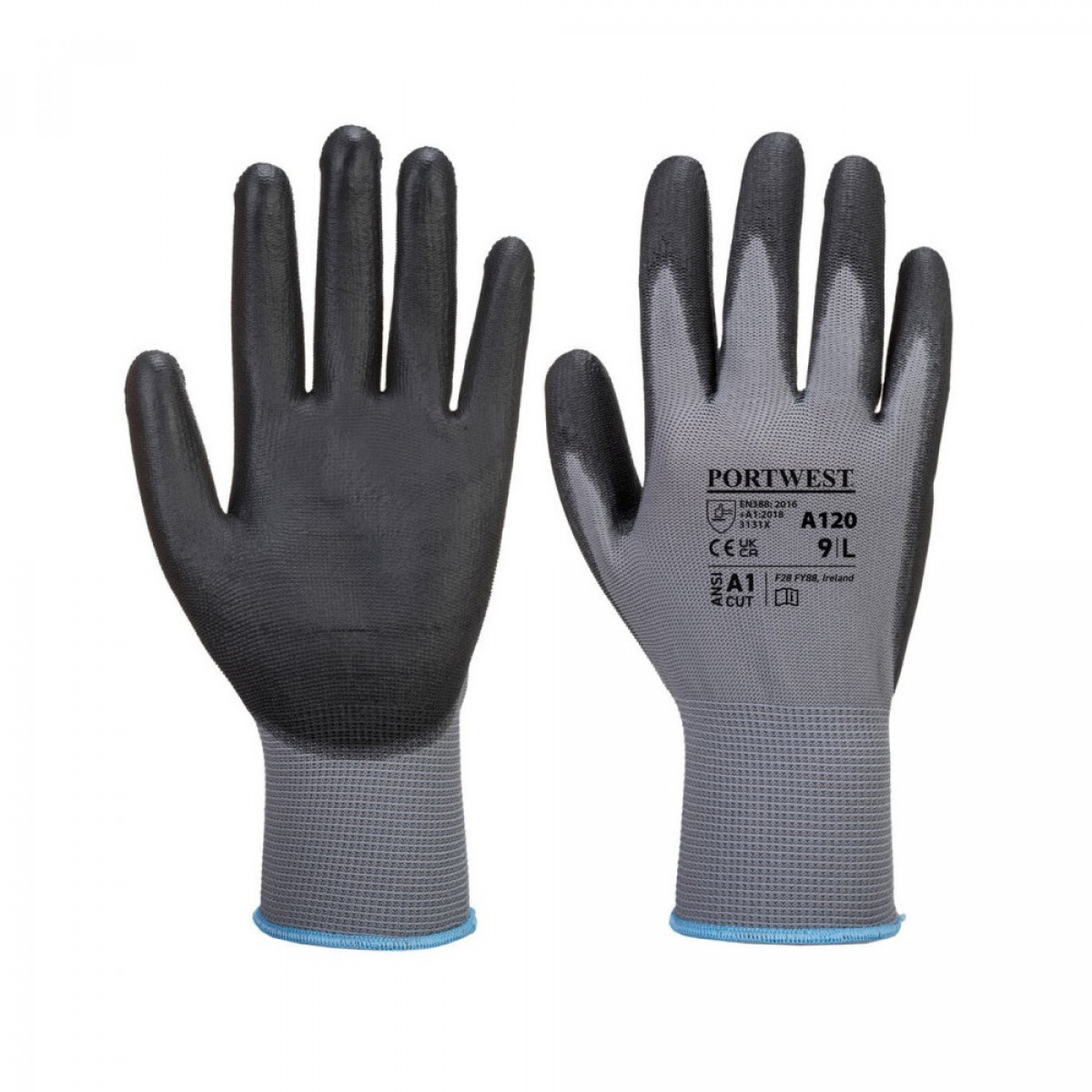 Kesztyű precíziós PU mártott tenyérrel S-es méret Portwest szürke/fekete