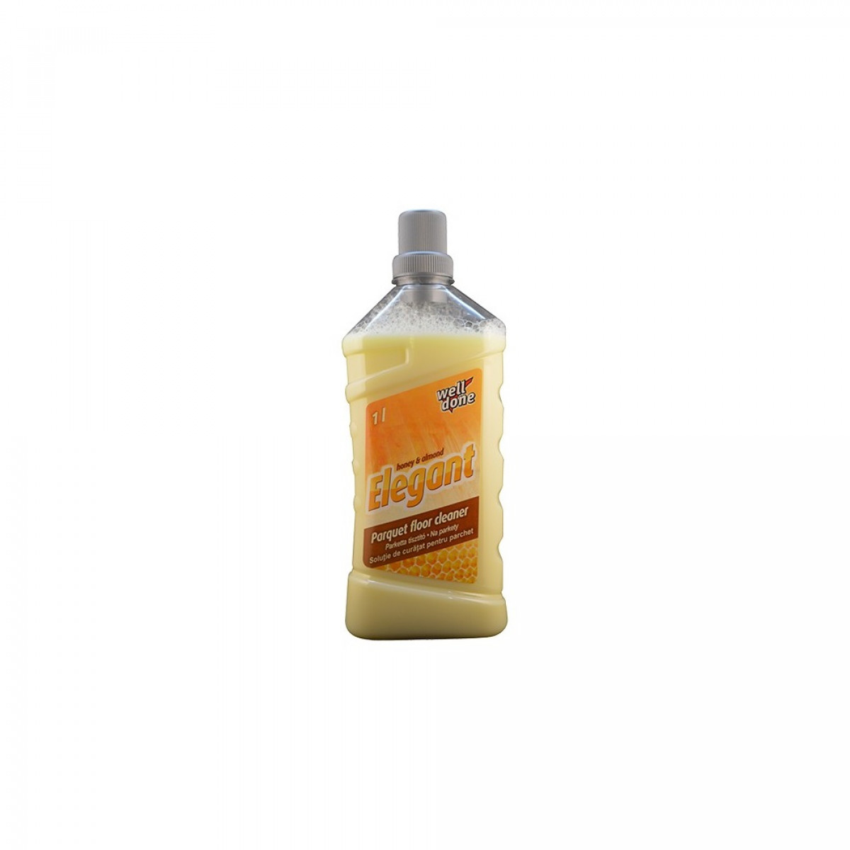 Well Done Elegant padlótisztítószer parkettához könnyen és hatékonyan távolítja el a szennyeződéseket, méhviasz tartalma ápolja a parketta felületet. Foltmentesen szárad,