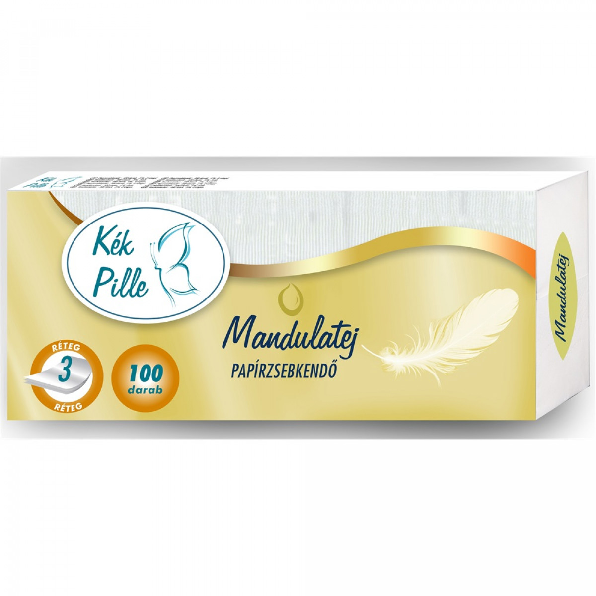 Papírzsebkendő 3 rétegű 100 db/csomag Kék Pille mandulatej bemutatása