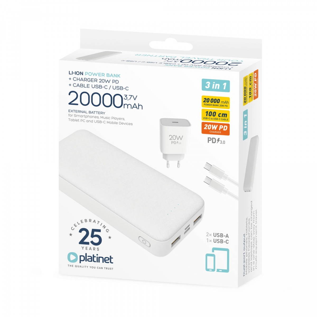 Powerbank szett 20000 mAh +20W PD töltő Platinet fehér
