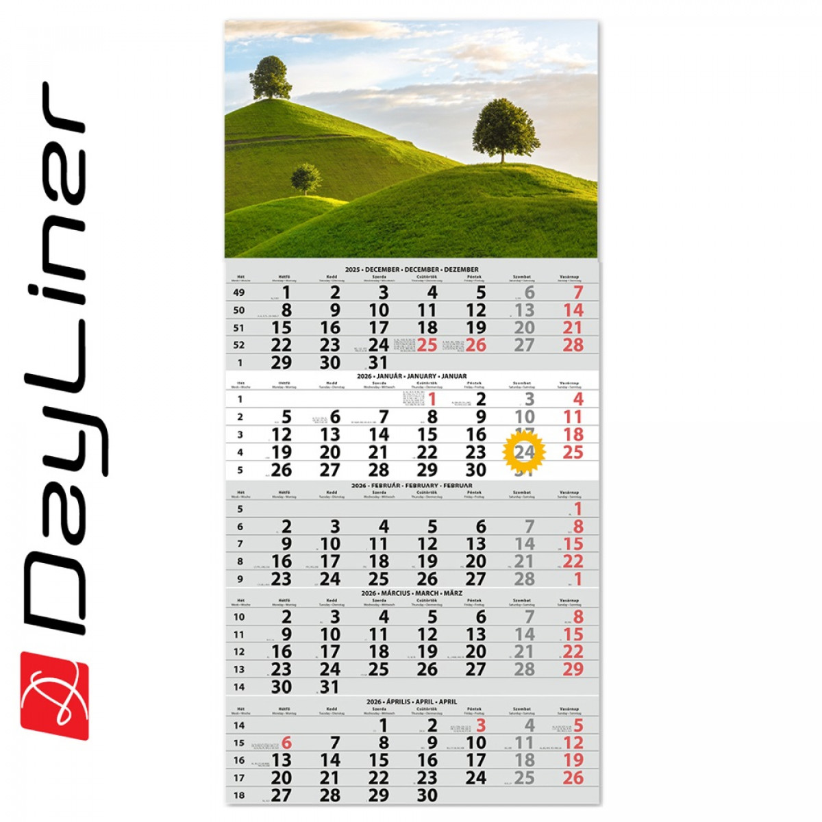 Speditőr naptár 1 tömb, 5 hónap SP-15 330 × 670 mm, fehér lapokkal Hangulat Dayliner 2026. bemutatása