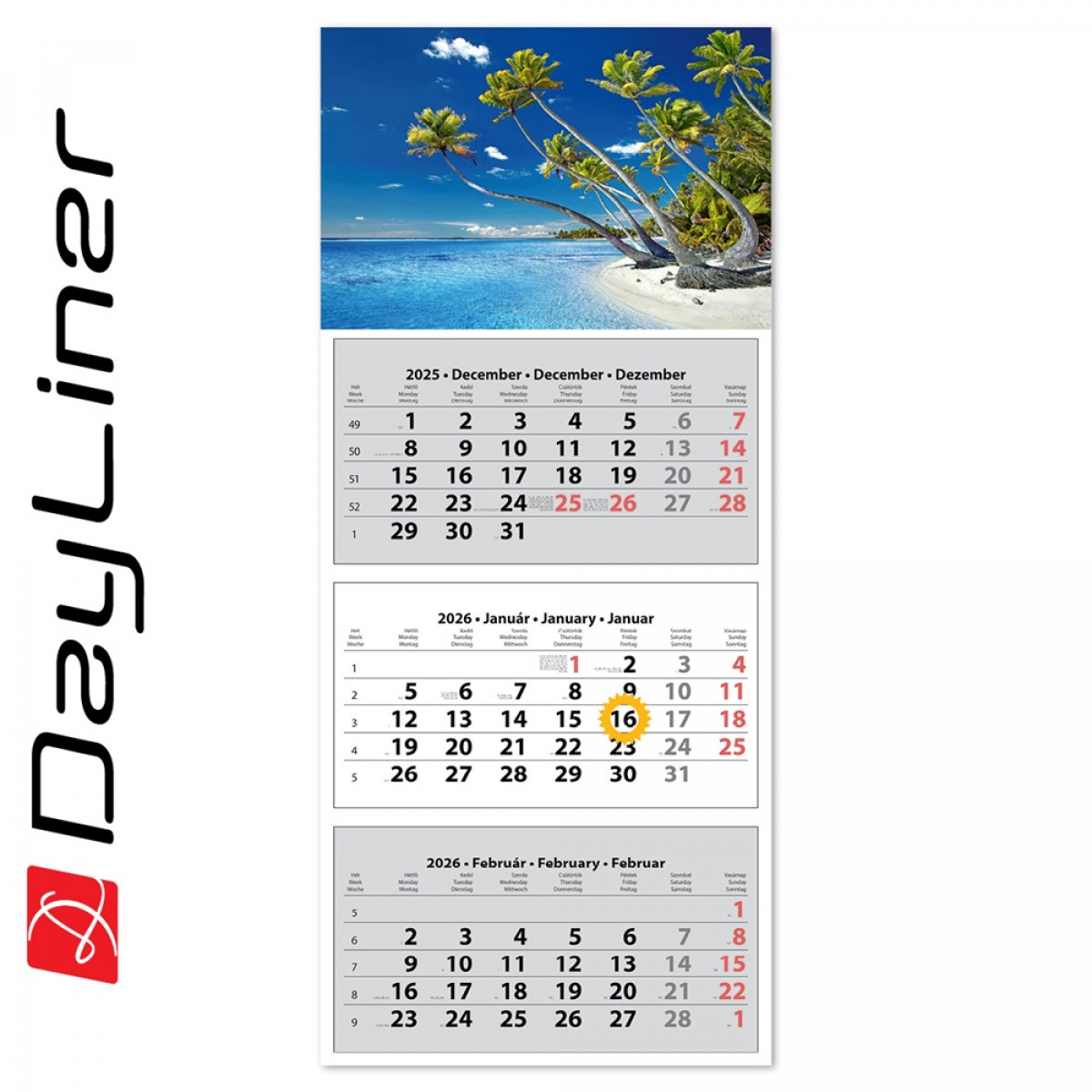 Speditőr naptár 3 tömb, 3 hónap SP-30 330 × 760 mm, fehér lapokkal Vízpart Dayliner 2026. bemutatása