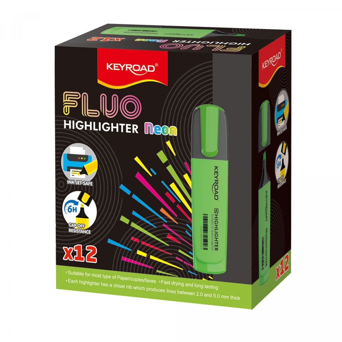Szövegkiemelő vágott hegyű, lapos test Keyroad Fluo neon zöld bemutatása